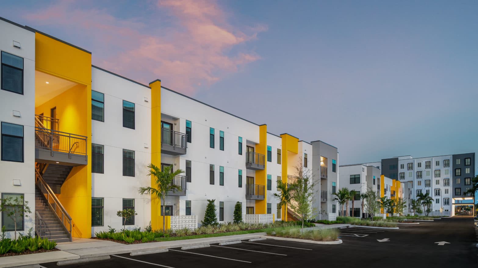 Sunsure LivingLIV is a luxury three-unit townhouse project located in downtown St. Petersburg. Given the narrow lot and required side yard setbacks, each home is only 18’ wide. Utilizing a variety of strategies, the design seeks to both simultaneously emphasize and overcome the narrow width. A four-foot wide service slot housing the stair and elevator are expressed on the front façade as balconies separating the units. Large windows on the south side wrap the corner bringing natural light deep into the townhomes. The open stairwell also allows borrowed natural light to cascade vertically. Finally, each major indoor room connects to an outdoor space of varying size and character. The floor plan of each 3,000 square-foot unit is designed for a variety of lifestyles and family types. On the second floor, the central kitchen is flanked by two living spaces allowing for multiple furniture arrangements. Although the third floor contains two conventional bedroom suites, the first and fourth floors each contain a flex-room with full bathroom that can be used as a bedroom, home office or additional living space.